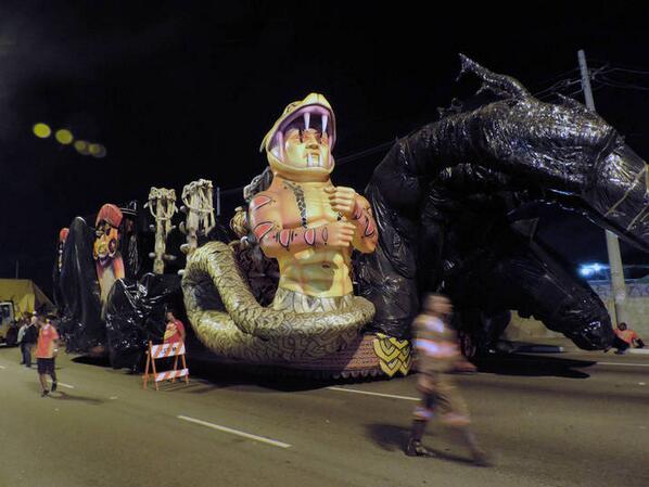 Ruas de São Paulo são invadidas por carros alegóricos na madrugada